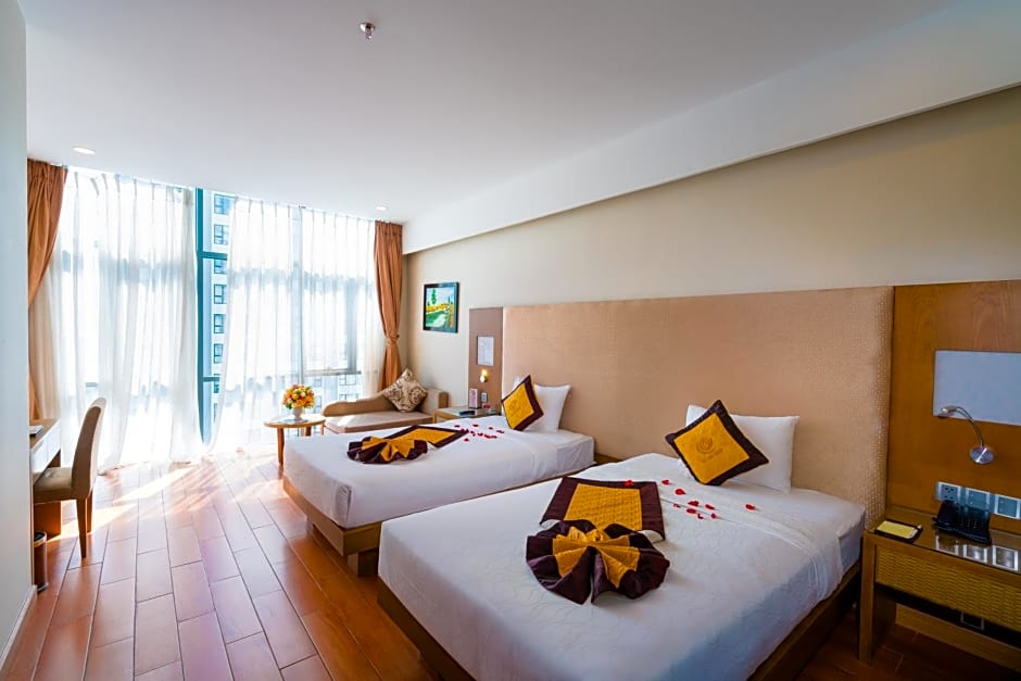 The spacious twin room features air conditioning, soundproof walls, a balcony with sea views as well as a private bathroom boasting a walk-in shower. The unit has 2 beds.